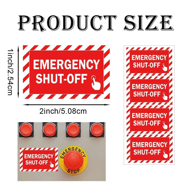 - Each package of 1 x 2 inch emergency shutdown labels contains 20 pieces, with sufficient quantity and suitable size for various equipment and machinery.