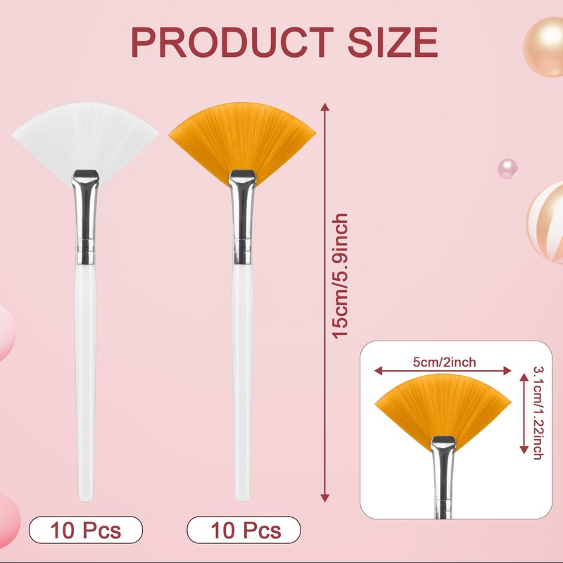 - Dual-Color 20-Pack Set – Includes 10 yellow and 10 white fan brushes (5.9 inches each), perfect for professional salons, makeup artists, or home beauty routines. The vibrant colors help with quick identification and organization.