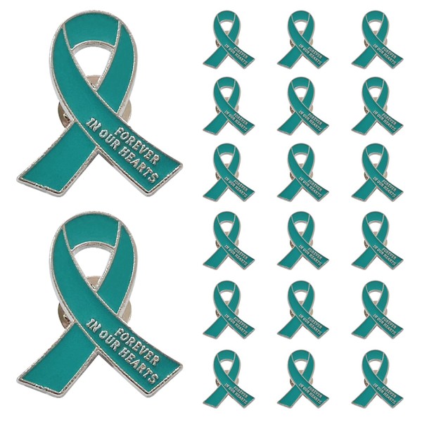 20 Pcs Funeral Ribbon Awareness Pins Memorial Lapel Brooches Forever In Our Hearts For Mourning Event, Small, Metal, no gemstone