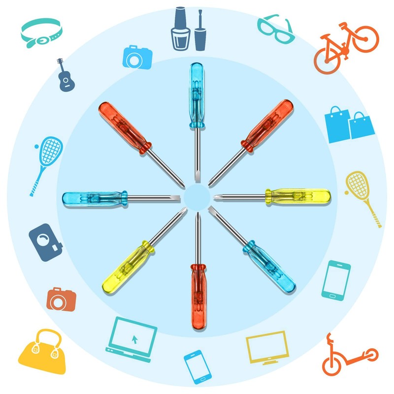 The clear colorful handles are cute and vibrant, making a great gift for family and friends, as a theme-specific party favor, or even as a festive sock filler. This mini screwdriver set is suitable for small repairs on glasses, watches, computers and other electronics, the fine screw head is more convenient and easier.