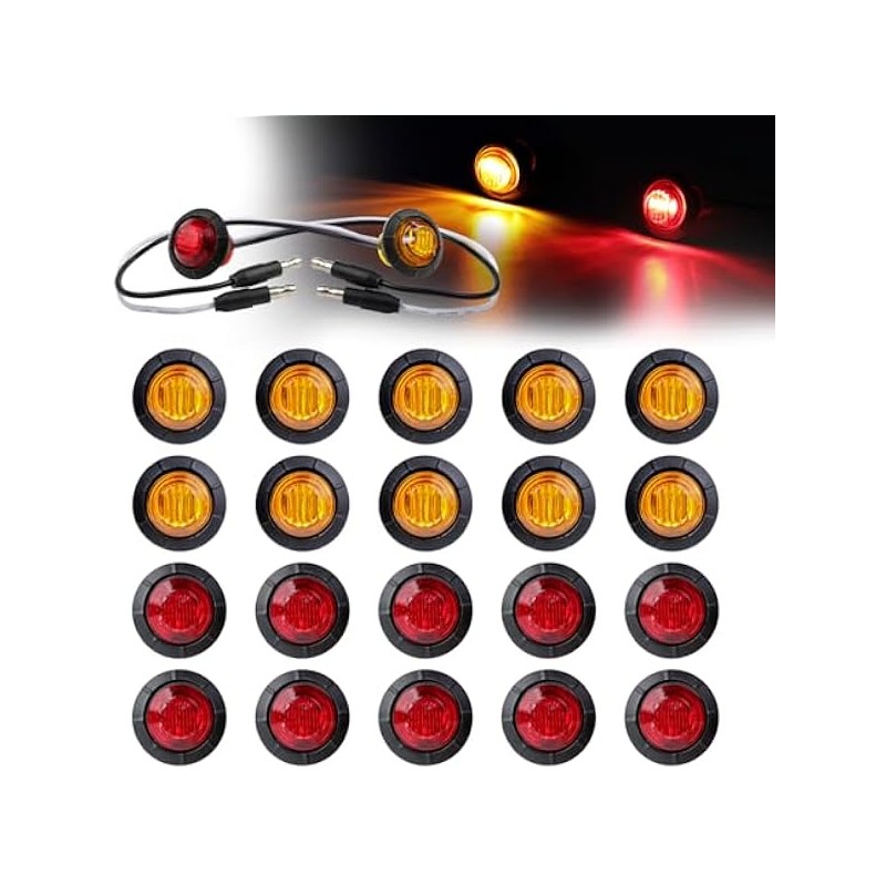 20 Pcs of 3/4" Bullet 10 Red + 10 Amber Side Marker Lights 3 LED with Connector Plugs for Trailer Truck 12V DC