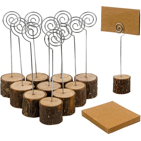 - Perfect Set for Your Party - Package comes with 20PCS wooden place card holders with swirl iron wire clip and 30Pcs blank kraft place cards for writing. Enough for you to prepare more for your family party, wedding or birthday celebrating.