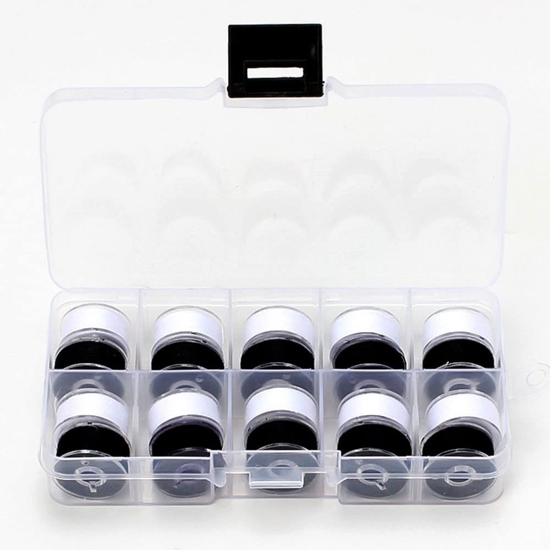 - Package: 20 pieces of Bobbins threads(10 white+10 black) into one clear box.