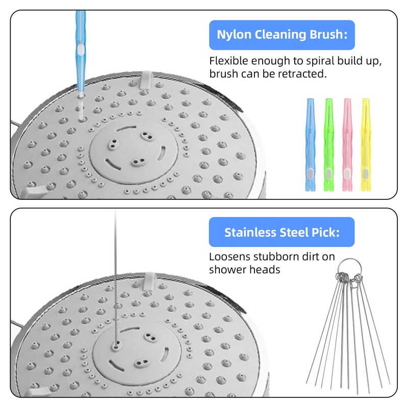 - Efficient Cleaning: This shower head cleaning brush set is specially designed for cleaning small holes, and can reach deep into hard-to-reach gaps to clear deposits such as dirt and scale, bringing your shower head back to life.