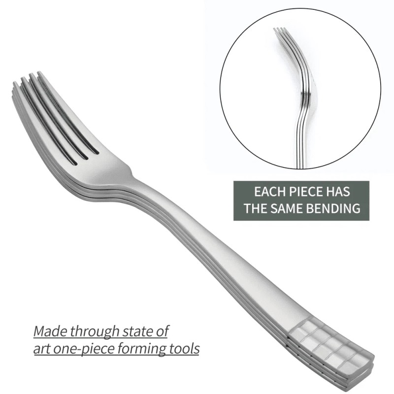 The 20-piece cutlery set combines function, form and style to transform ordinary everyday meals into exquisite dining experiences. The classic silver color is paired with a sophisticated mirror-polished surface, giving you a modern cutlery design that is perfect for any table. Whether you are planning a formal dinner for four or enjoying a quiet dinner alone, this stylish cutlery set will enhance your dining experience with its modern design and gorgeous handle details. This silverware set is dishwasher safe, making cleaning quick and easy. In addition, the set is heat-resistant and rust-resistant, making it durable and worthy of your trust for many years.
