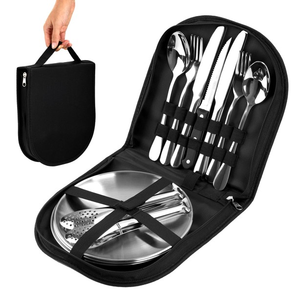- Comprehensive Set: This 20-piece silverware set includes Includes camping plates and utensils and camping fork spoon knife set food tongs bottler opener for a complete outdoor dining experience.