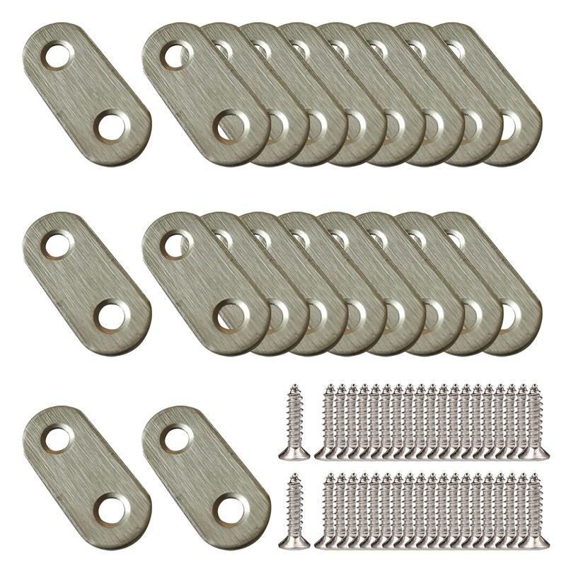 20 Pieces Flat Connectors 37 x 16 mm Stainless Steel Connecting Plates for Repairing, Reinforcing and Connecting Wooden Furniture with Screws