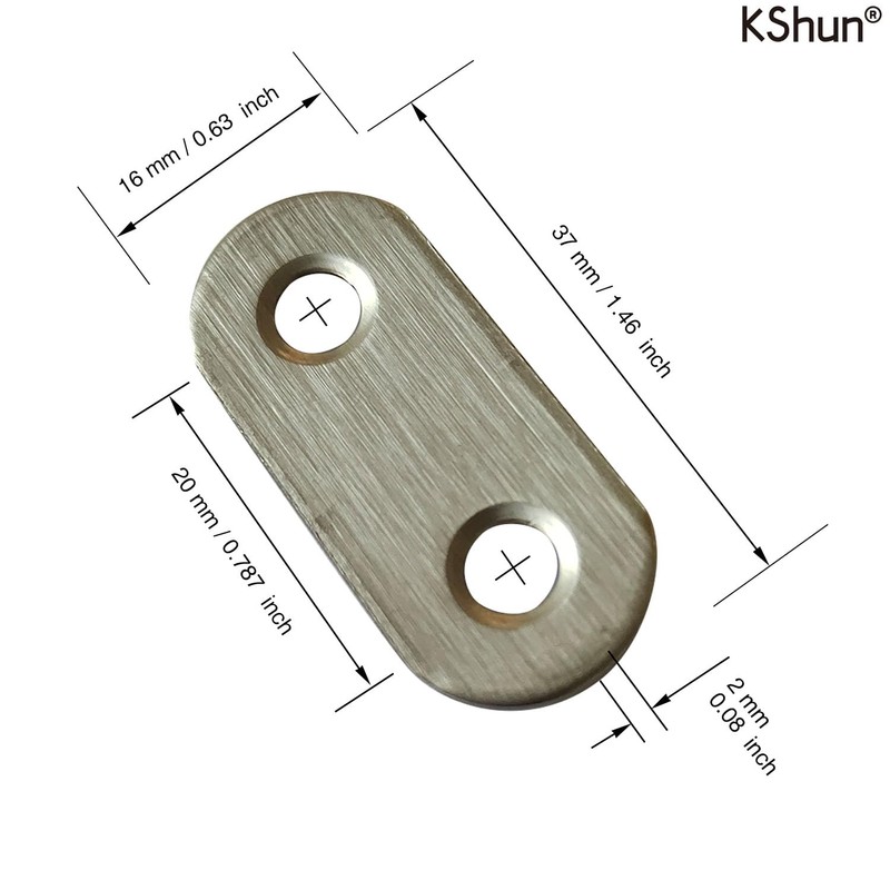 - The length of the flat connectors is 37 mm, the width is 16 mm and the thickness is 2 mm. We only pick up standard material. (Many factories use materials that are below the quality standard. The declared 2 mm material measures only 1.8 mm.)