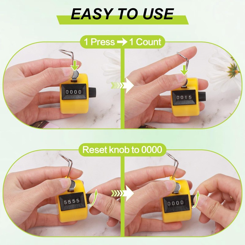 - Easy to Use: our 4 digit mechanical clicker counter is manual counting, no battery, simple operation, mechanical structure can accurately count to 9999, enough to calculate a variety of data; You simply press the button at the top of the hand held counter clicker, the counter reacts and counts accurately, and the reset knob on the side can be easily and quickly reset to 0 with just a few clockwise turns. Note that these clickers cannot subtract numbers