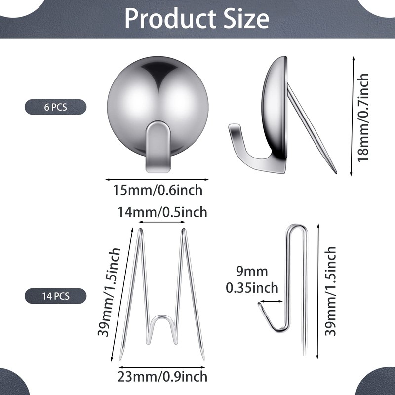 - Product Content: you will receive 14 pieces of double pointed panel wall wire hooks, which can be applied to hang some light items such as photo strings, light strings, keys, and so on, and 6 pieces of cubicle wall hooks with strong bearing capacity to satisfy your hanging of different items need