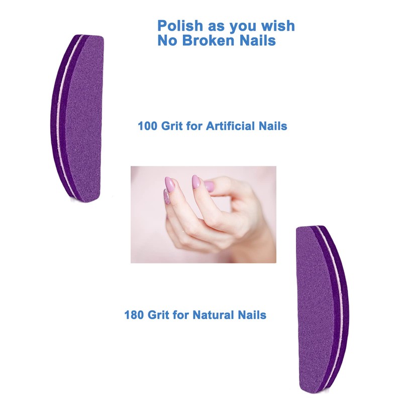 20 pulidores de uñas, limas de uñas de doble cara, bloques de pulido de grano 100/180, portátil, lavable, lima de lijado en forma de arco (morado)
