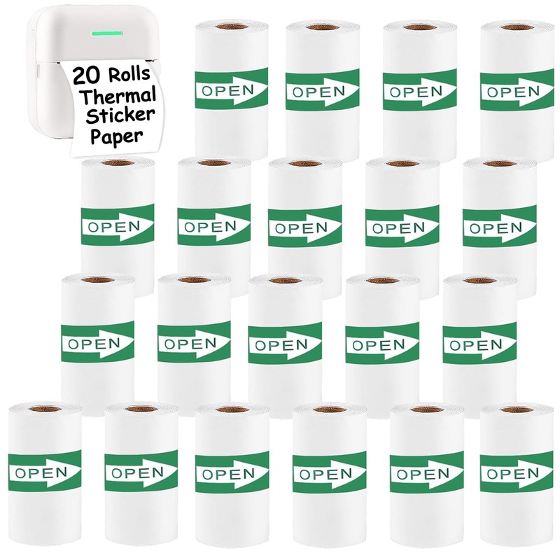 20 Rolls Self-Adhesive Mini Printer Thermal Sticker Paper: