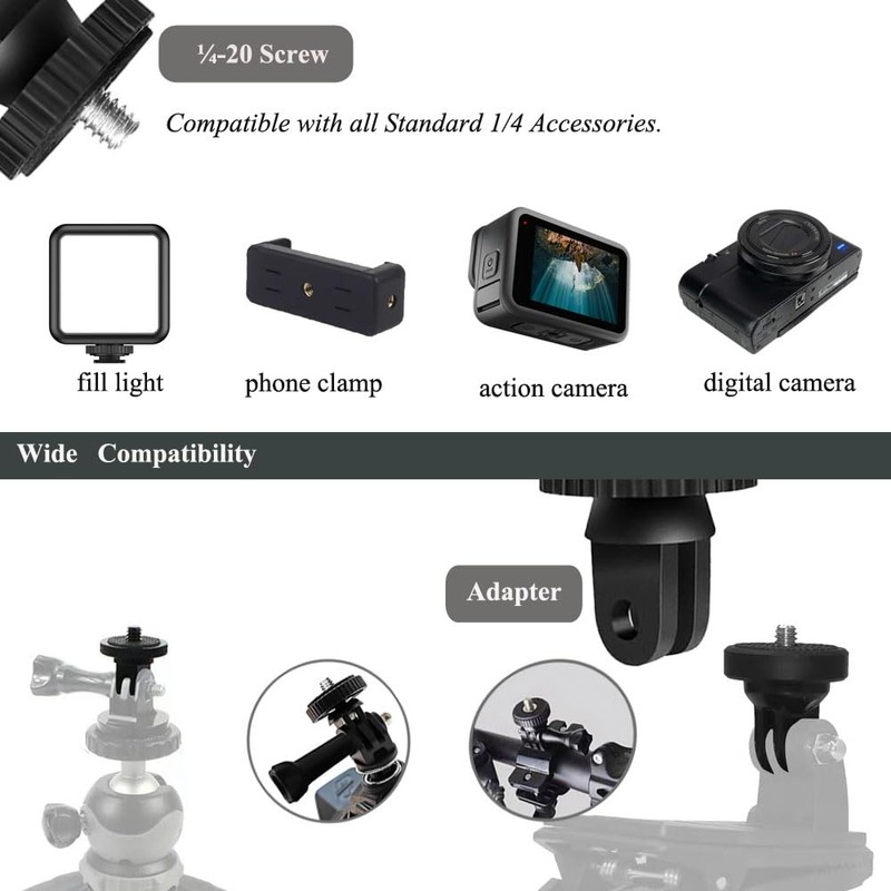 • Universal Compatibility:It is compatible for GoPro Hero13/12/11, for Insta 360 ONE X4 X3, and for DJI Action 4 and all other standard 1/4 accessories.