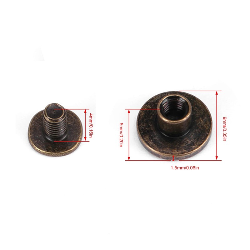 High quality copper material, durable and sturdy. Fine workmanship thanks to high-quality electroplating technology, rust-proof and colourfast. Good for craft projects or repairs to luggage, clothes etc.20 screws and 20 nuts. High quality product.