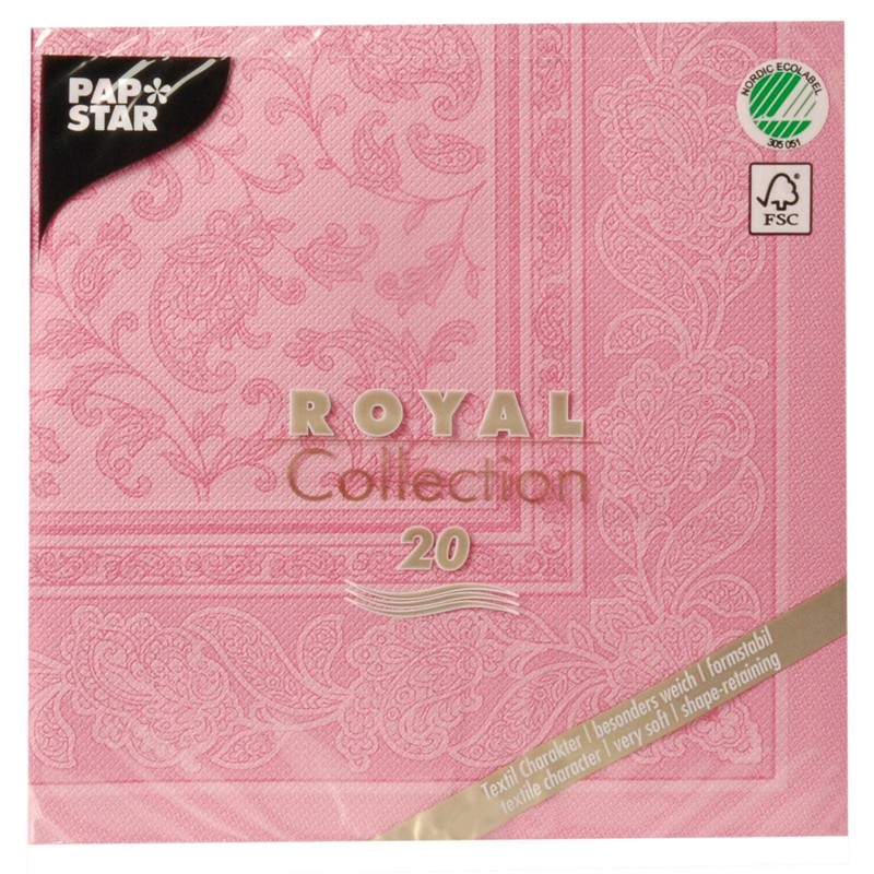 '20 Servietten ROYAL Collection 1/4 Fold 40 x 40 cm Pink Ornaments
