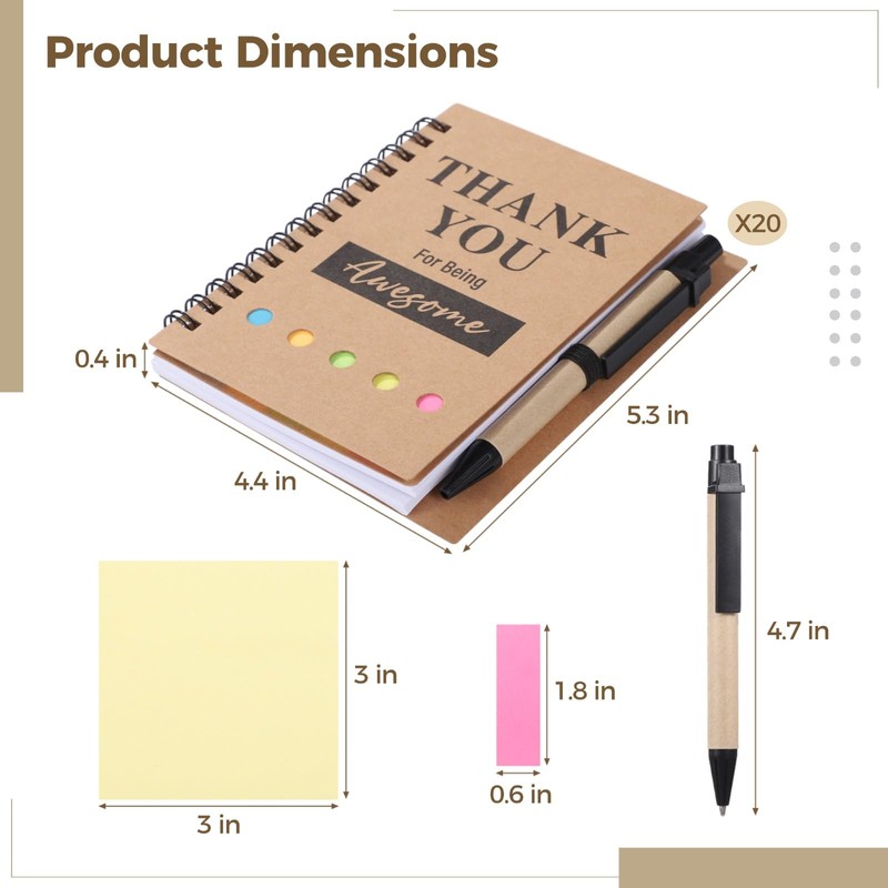 - Complete Appreciation Kit: Delight your team with a thoughtfully curated set featuring 20 spiral notebooks with bamboo ballpoint pens and sticky notes—everything needed for employee appreciation gifts bulk and office staff gifts that speak volumes of your gratitude