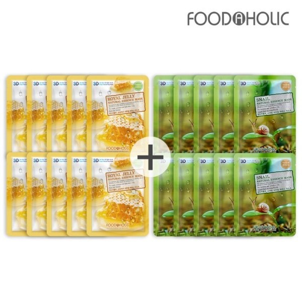 (20 sheets/Royal Jelly + Snail) Food 3D Natural Essence Mask Pack