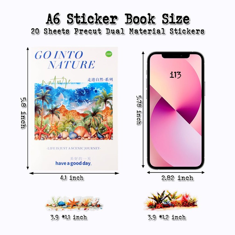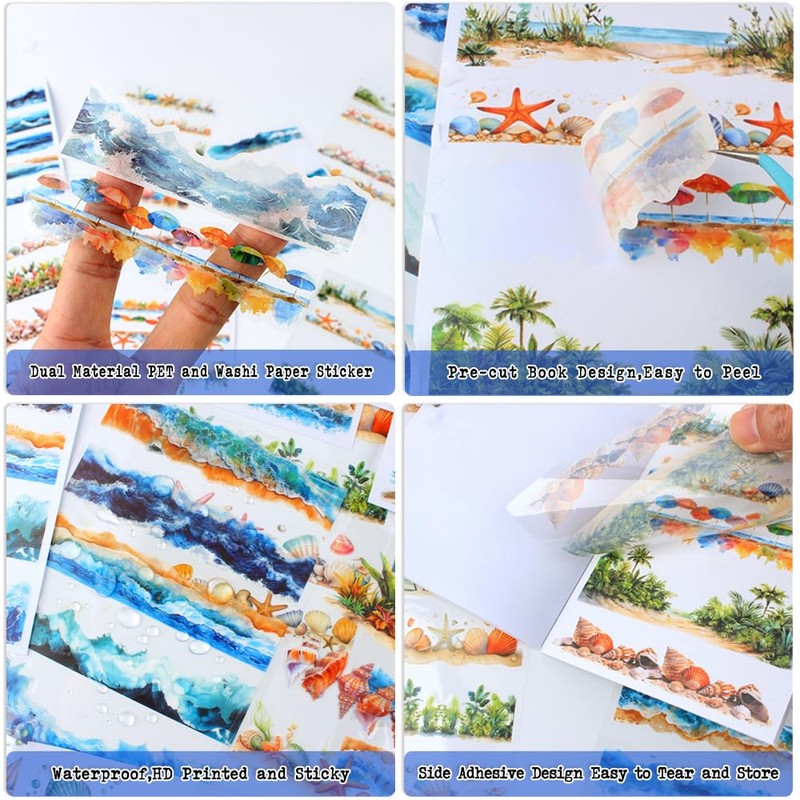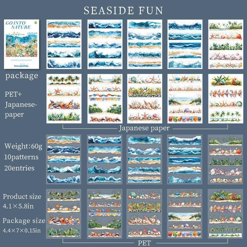 - Variety Pack: This journaling sticker book includes 20 sheets of seaside landscape stickers, these 20 sheets stickers are pre-cut and made from dual PET and washi materials