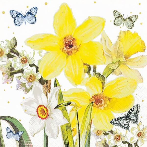 20 Small Cocktail Napkins Daffodils in Full Leaf | Spring | Easter | Table Decoration | Decoupage | Napkin Technique 25 x 25 cm