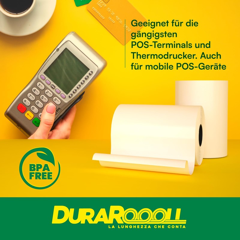 20 Thermopapier 57mm Rollen Kassenbon Pos Terminal - Thermorollen DuraRoooll 57mmx38mmx16m für Kassenzettel Kompatibel mit Nexi SumUp Pax Axerve Ingenico Smart POS - Kartenterminal BPA-free Papier