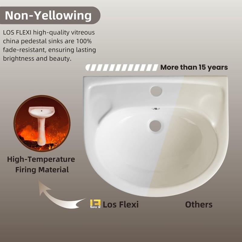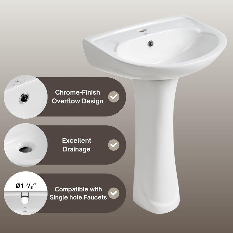 20"W x 17"D White Morden Pedestal Sinks for Small Bathrooms, Los Flexi 20 Inch Pedestal Sink Combo, Bathroom Sink with Overflow & 1 Faucet Hole, Freestanding Installation