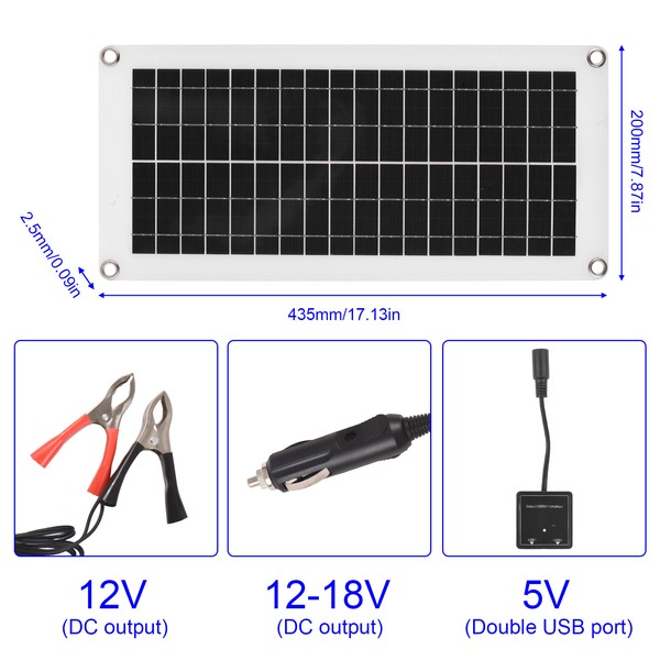 【Versatile Charging Options】 Equipped with a 12V dual USB output battery panel controller, this solar kit offers versatile charging options. It can be used to charge various devices such as mobile phones, car batteries, and RV batteries, making it ideal for automotive, boating, and camping applications.