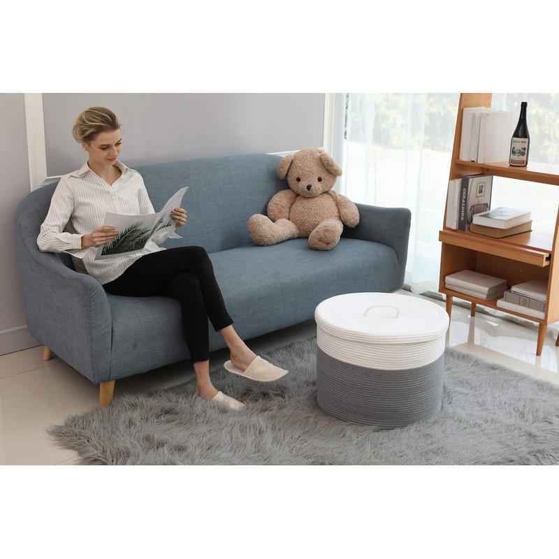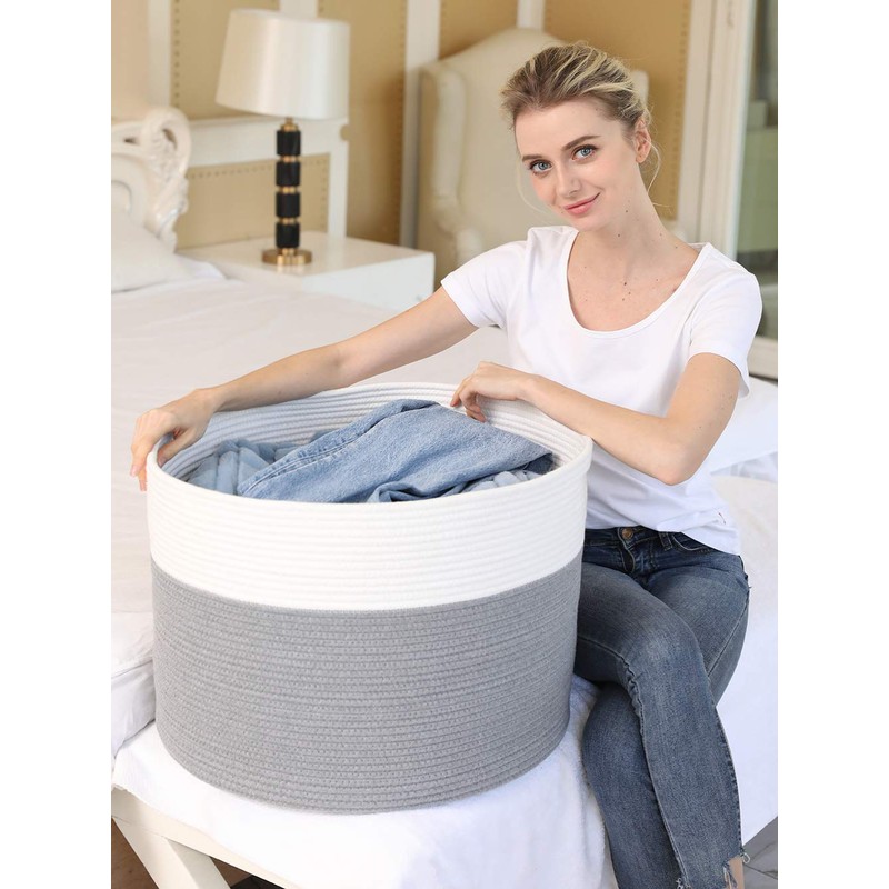 - ✓ SPACIOUS EXRTA LARGE SIZE: 20 inches (diameter) x 15 inches (height) extra large cotton rope basket. This large storage basket can hold more toys, towels, blankets, pillows, clothes, bed linen, and adopt large objects. Perfect large blanket storage basket or toy basket. Weighs 5 Pounds, has more cotton than other so called extra large baskets in the market.