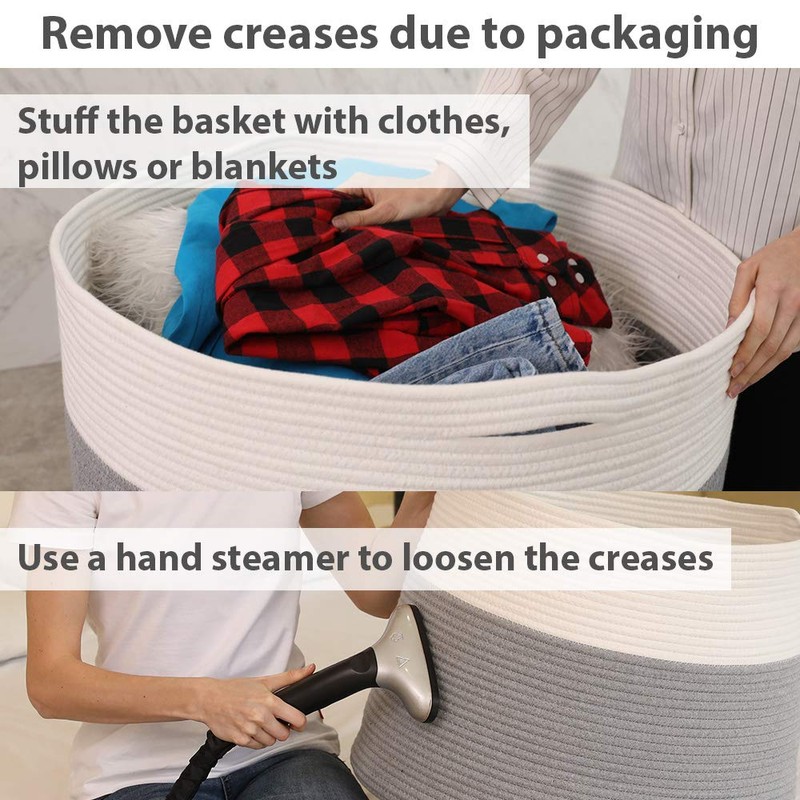 - ✓ EASY TO USE: These large woven storage baskets are foldable, space-saving and convenient to store, equipped with handles. You can simply fold them up when not in use or travel. Please note there are some creases due to packaging, you can fill this storage basket with large items to remove ceases.