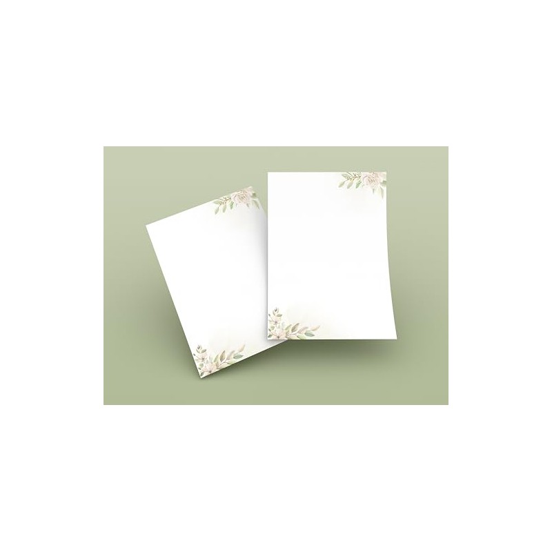20 x Letter Paper Flower Motif with 10 Envelopes E&G Klasse Adults A4 White Green Beige Writing Paper Roses Motif Watercolour Set Writing Gift Paper