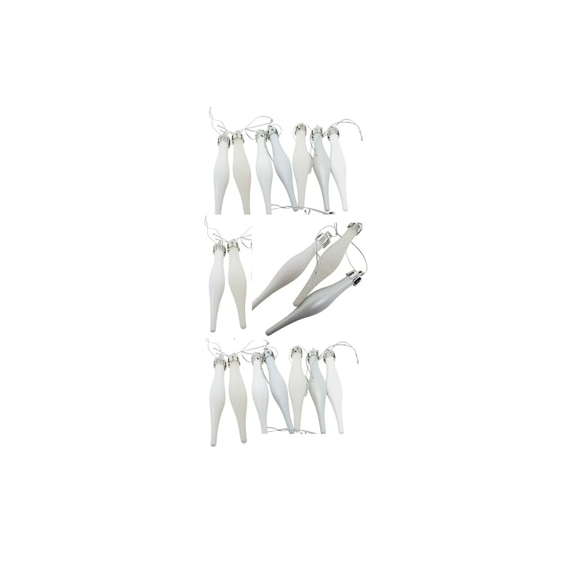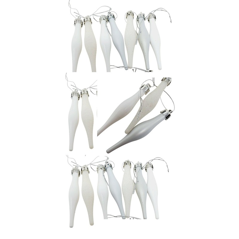 20 x WHITE Christmas Tree Tear Drop Droplet Baubles Decorations -Plastic Glitter Icicle