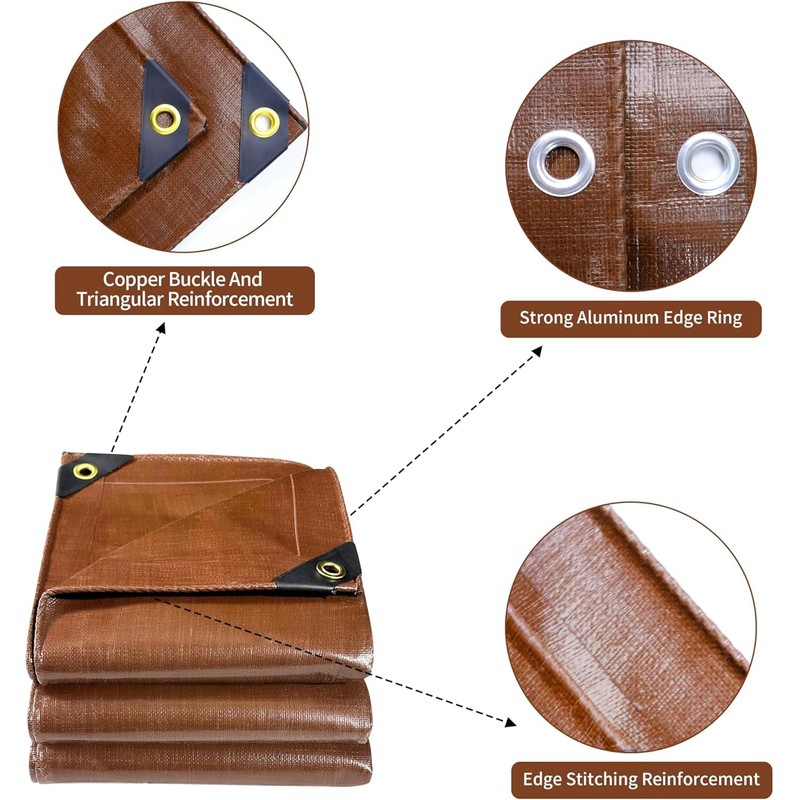 20'x30'Heavy Duty 16Mil Brown Poly Tarp Cover, Finished Size with Grommets and Reinforced Edges, Muti-Use