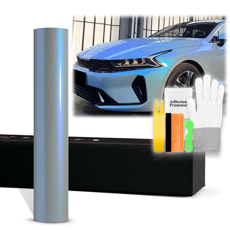 20"x60" (1.6FTx5FT) Gray Blue PET Space Candy Gloss Chameleon Metallic Color Shift Color Change Vinyl Wrap Auto Car Sticker Decal Film Sheet Bubble Free Air Release Technology with Tool Kit