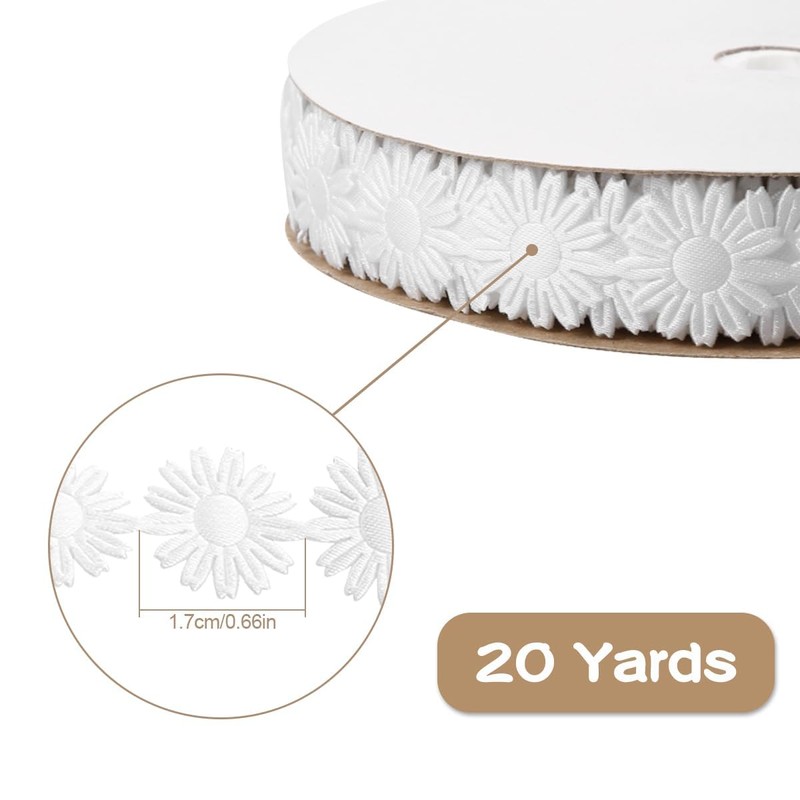 - ELEGANT DAISY FLOWER DESIGN: The sewn lace ribbon features delicate and charming daisy flower patterns, adding a touch of countryside style to your crafts. It can meet your various decorative needs.