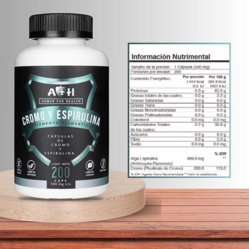 200 Capsulas Picolinato D Cromo 200mcg Espirulina A4h Sabor Sin Sabor