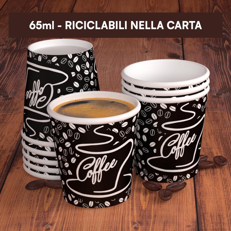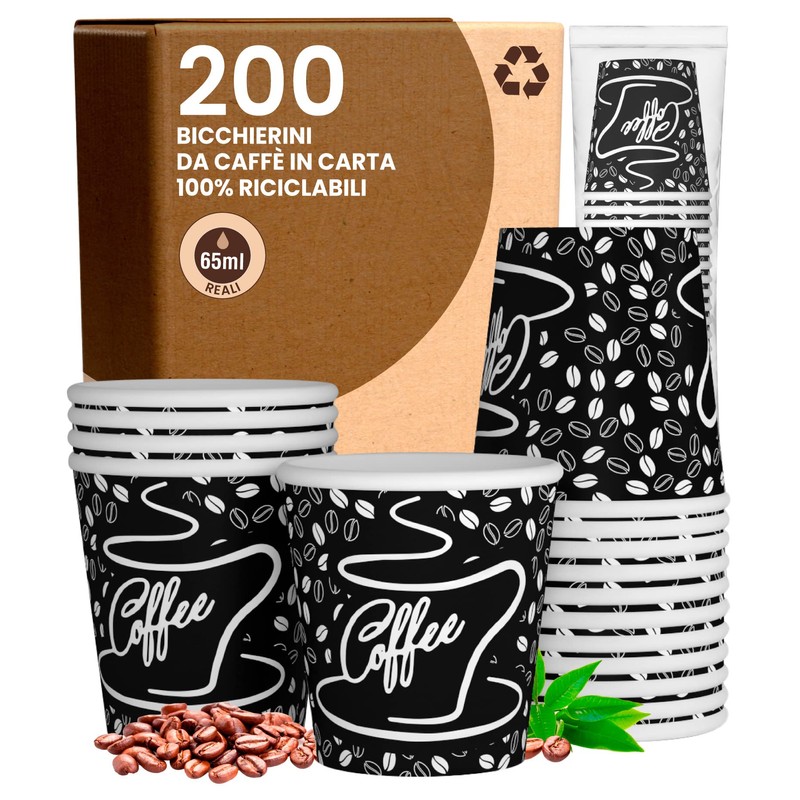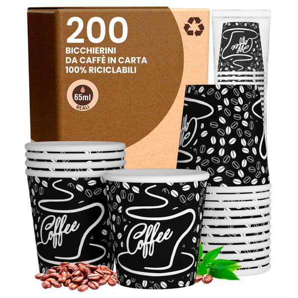 200 Coffee Paper Glasses 65ml BlackCUP Eco Friendly Biodegradable Disposable Small Asport Hot Drinks