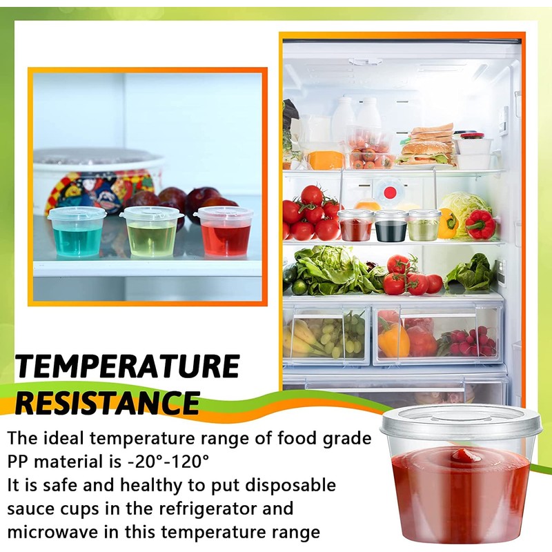 [Temperature tolerance]: +120°C/-20°C (microwave and freezerable) [Product Features]: Disposable condiment cups are mainly used for: condiments, sauces, condiments, etc.