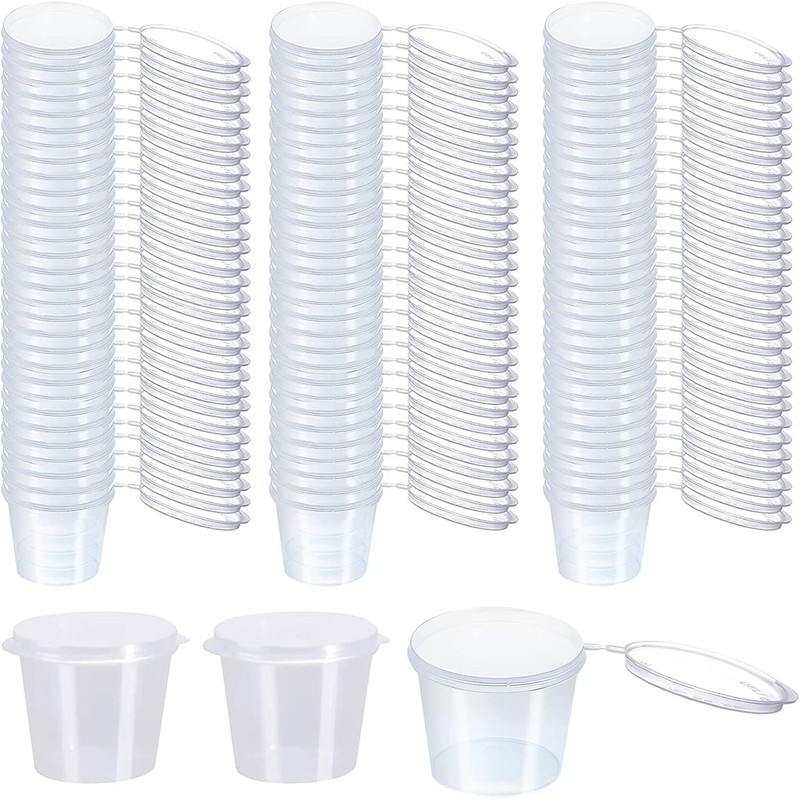 [200 PACK - 1 oz] Round Food Container Pots with Lids, Sauce Pots Reusable Jelly Shot Cups Clear Small Deli Pot Restaurants Takeaways Containers for Small Dips Chutney Ketchup Salads-25ml