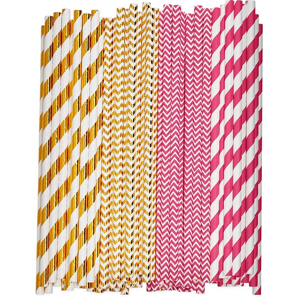 • Comfy Package's quality 7.7-inch long & 6 mm diameter Pink & Gold Multi-pattern Paper Drinking Straws is perfect for birthdays, weddings, bridal showers, baby showers, bachelor parties, engagement parties, graduation celebrations, anniversaries, and more.