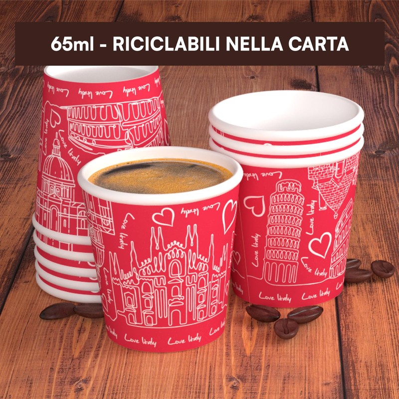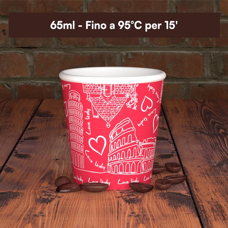 200 Paper Coffee Cups 65ml Italy Red Eco-Friendly Biodegradable Disposable Cups Small Takeaway Hot Drinks