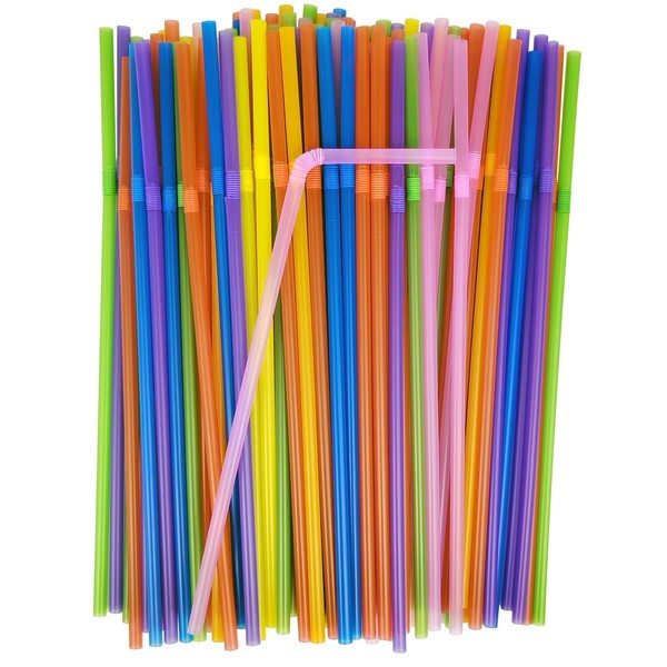 200 Pcs Colorful Plastic Straws - 8.26 Inch Flexible Disposable Drinking Straws for Parties, Cafes & Home Use