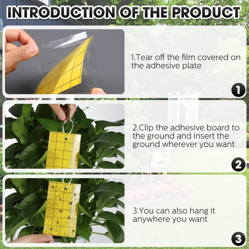 - Double Sided Design: peel off the covering double sided film, the plant sticky flying catcher for indoor plants is available on both sides, UV resistant, waterproof and heat resistant, can be utilized in any season to protect you and your family from harmful insects, safe and effective