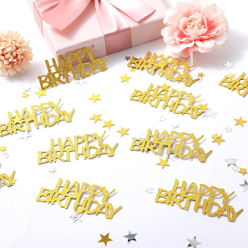 - Ample Quantity: Receive 200 pieces of glitter gold 'Happy Birthday' confetti, each measuring approximately 6 x 2.2 cm/2.36 x 0.866 inches. This generous amount ensures you have plenty to decorate your birthday party tables and create a festive atmosphere
