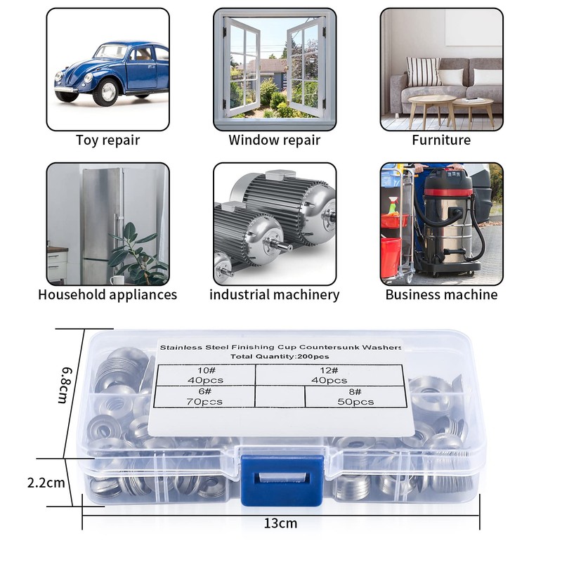 - High-quality Material: All countersunk washers are made of superior stainless steel, featuring corrosion resistance, rust resistance, not easy to break, maintaining high strength and excellent performance in harsh environments, durable and long-lasting use.