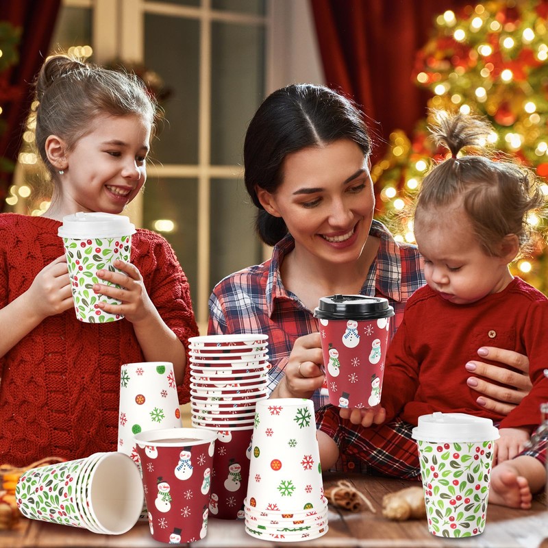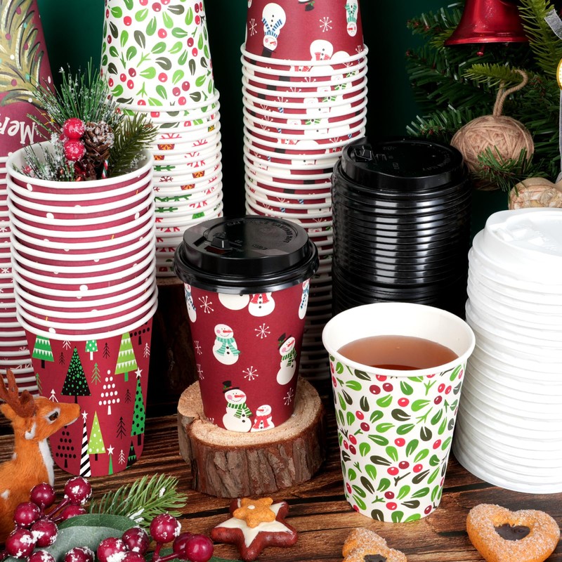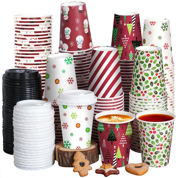 - Package Include : you will receive 200 Pieces 12 oz Christmas Paper Cups with Lids, 40 of each pattern, which are beautiful and practical; Enough for home, restaurant, office, school party decorations and replacements needs ,are ideal supplies for Christmas party.