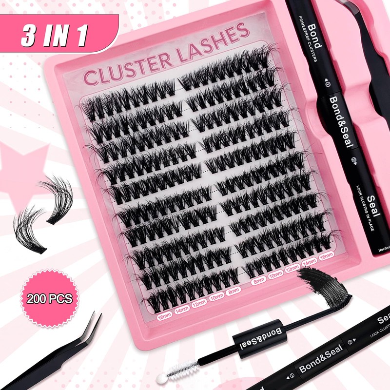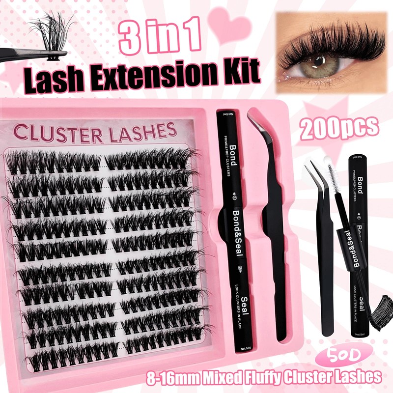 - Fluffy cluster eyelash extension kit: fluffy volume eyelash extension kit, which contains 200 pieces 8-16 mm mixed fluffy individual eyelashes, 10 ml 2-in-1 eyelash binding and seal, 1 eyelash applicator tweezers. Everything you need is right here. Save money and time now! Simply get the luxurious eyelash extension look.