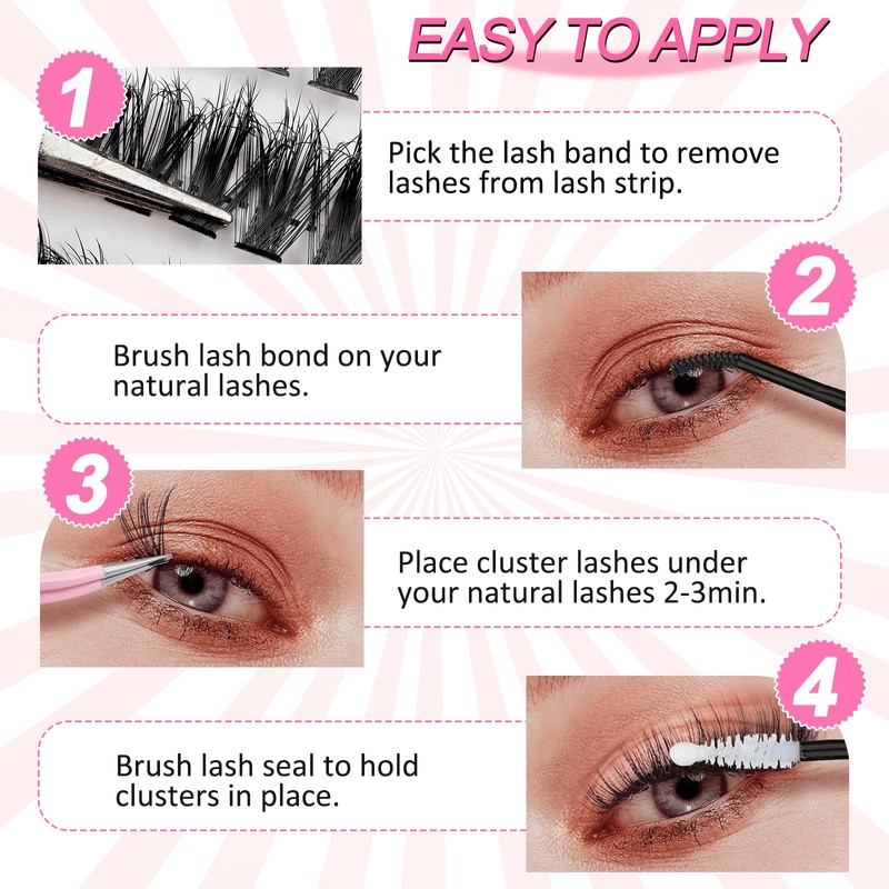 - Service for your beauty: thank you for choosing our eyelash set! Super light! When you wear our eyelash clusters, you won't feel their weight. We strive to provide better products and improve customer satisfaction.
