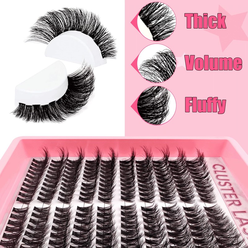 - LONG LASTING CUSTOM LASHES Fluffy eyelash clusters are handmade from high quality synthetic fibers. Wispering eyelash extensions fit comfortably on natural eyelashes and eyelids. D curl cluster lash extensions are fluffy like mink eyelashes.