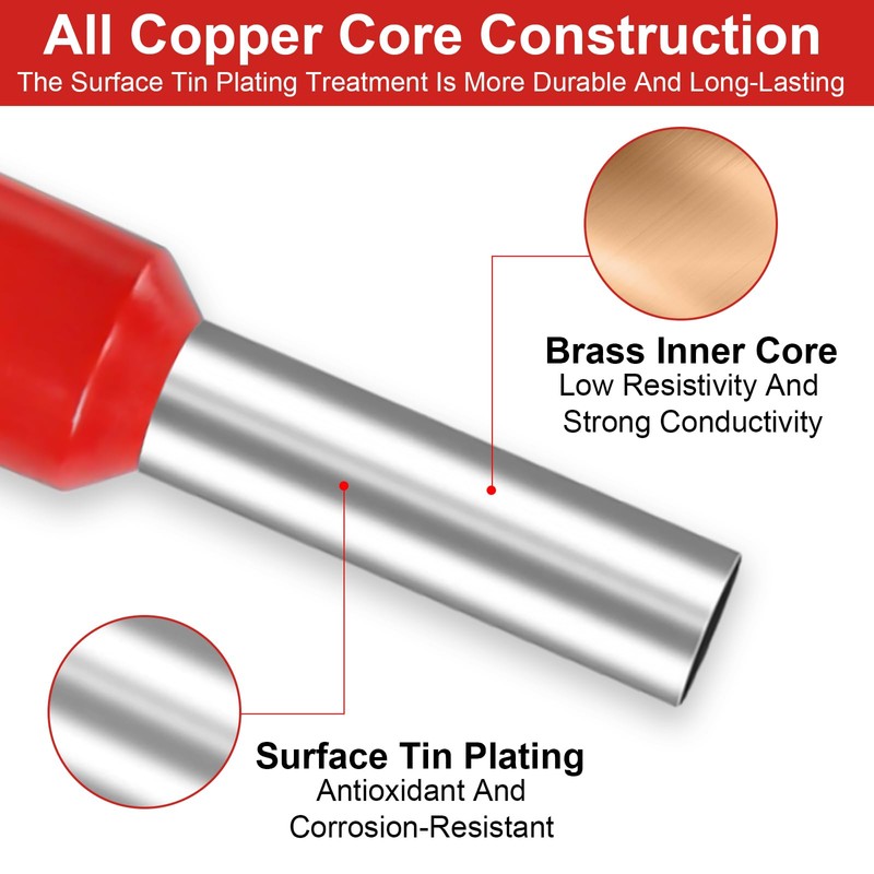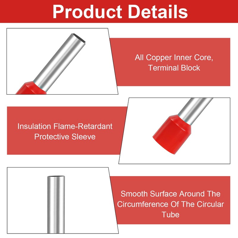 200 pieces wire end ferrules 10 mm² x 18 mm long red, wire end sleeves 10 mm² wire end sleeves 10 mm2 wire end ferrules 10 mm2 long cable 10 mm2 wire end ferrules 10 mm2 set