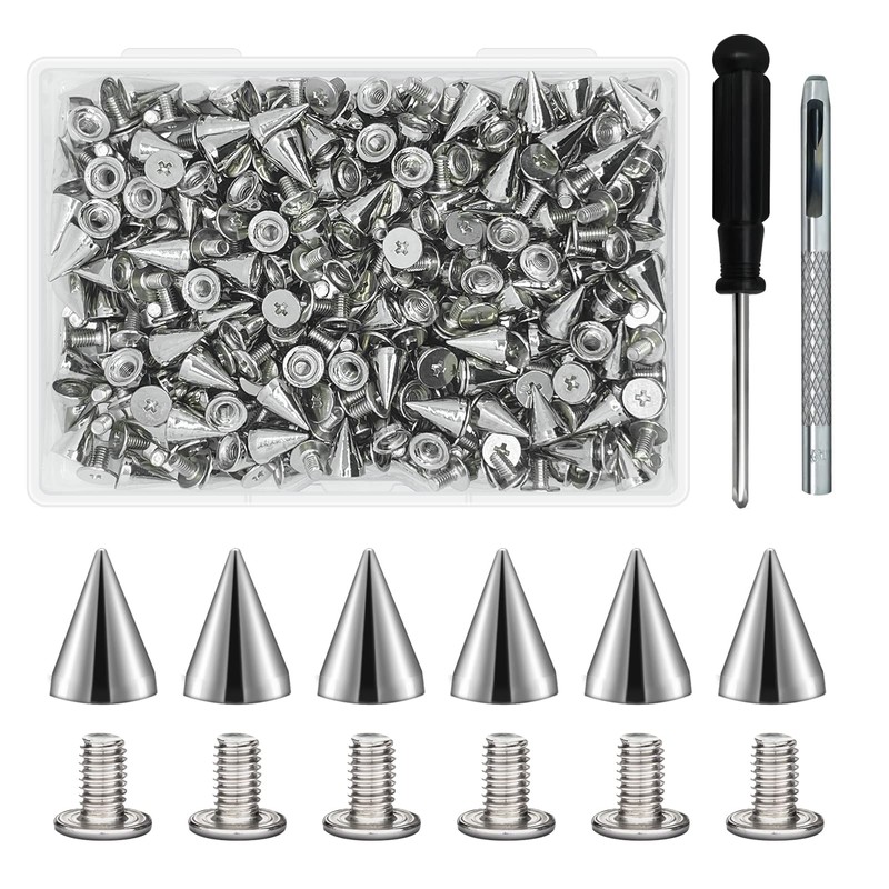 - 【You will receive】200sets metal cone spikes with screw. Size: 0.28inch x 0.39inch (7 x 9.5mm)
