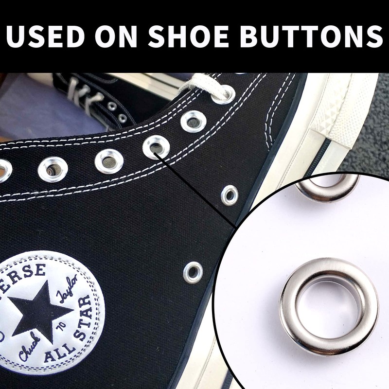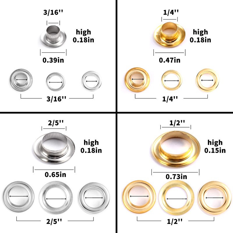 - Different Sizes and Colors: This set includes 100pcs gold grommets and 100pcs silver grommets (each set includes 1 eyelet and 1 washer), enough to meet your needs, and you will receive a storage box with removable baffle to separate compartments
